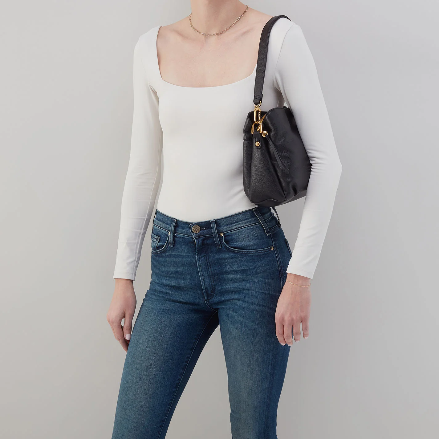 Starr Convertible Shoulder Bag in Pebbled Leather - Black